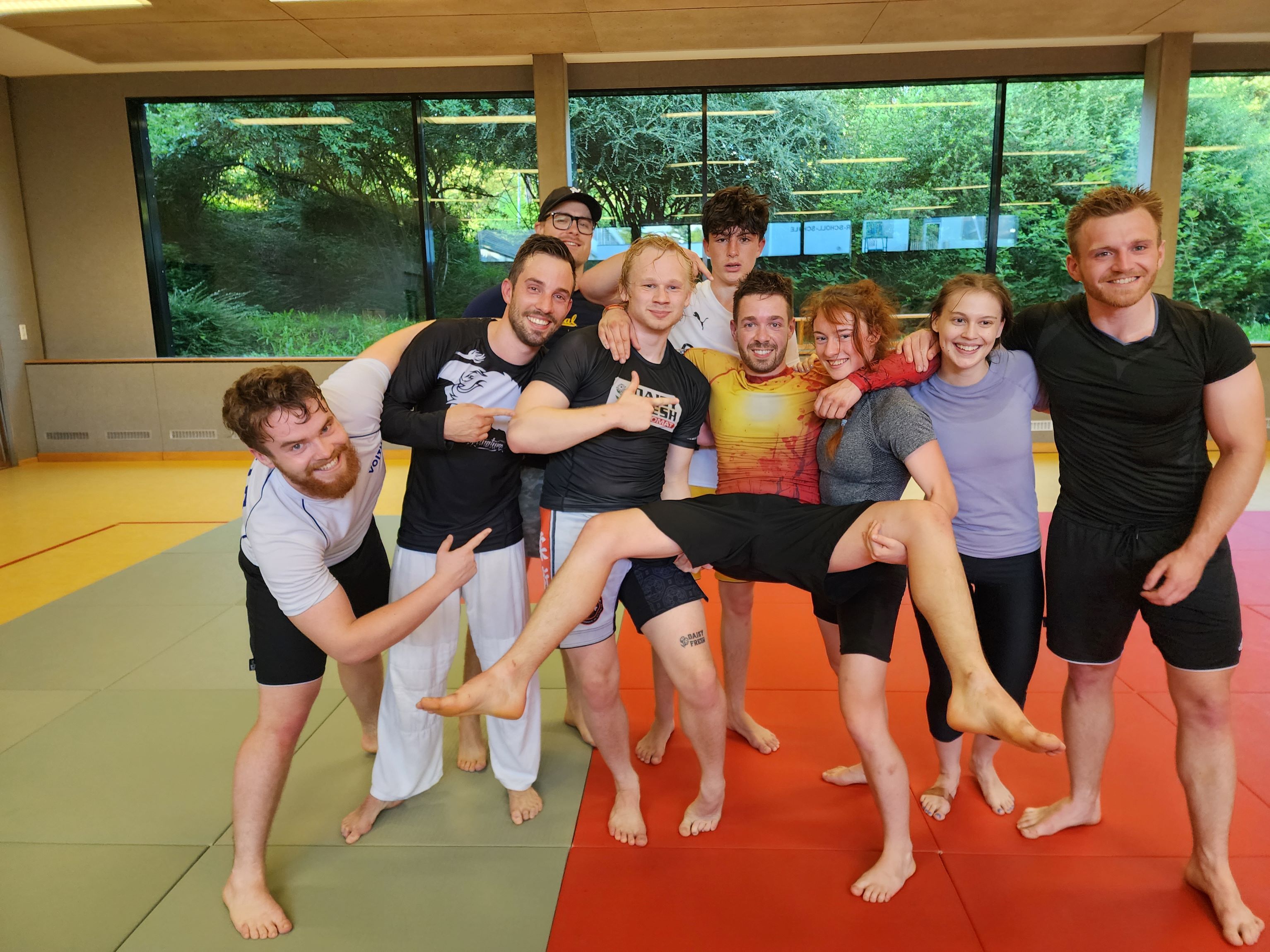 Wir sind die BJJ-Kampfsport-Gruppe im KiDojo Tübingen. BJJ ist eine aus Brasilien stammende Kampsportart, die aus den japanischen Kampfkünsten Judo und Jiu Jitsu hervorging. Das Ziel eines Kampfes ist es bei uns, den Gegner am Boden zu kontrollieren und durch Gelenkhebel- oder Würgegriffe zum Aufgeben zu bringen. Beginnt der Kampf im Stehen, wird der Gegner zunächst durch einen Wurf (wie z.B. im Judo) oder eine andere Art von Takedown zu Boden gebracht. Unser Training beinhaltet also auch Techniken aus dem Judo und Ringen. Wir konzentrieren uns aber auf den Kampf am Boden. Dazu trainieren wir die spezifischen Techniken, sowie Beweglichkeit, Kraft, Ausdauer, sicheres Fallen und alles, was wir sonst noch benötigen.