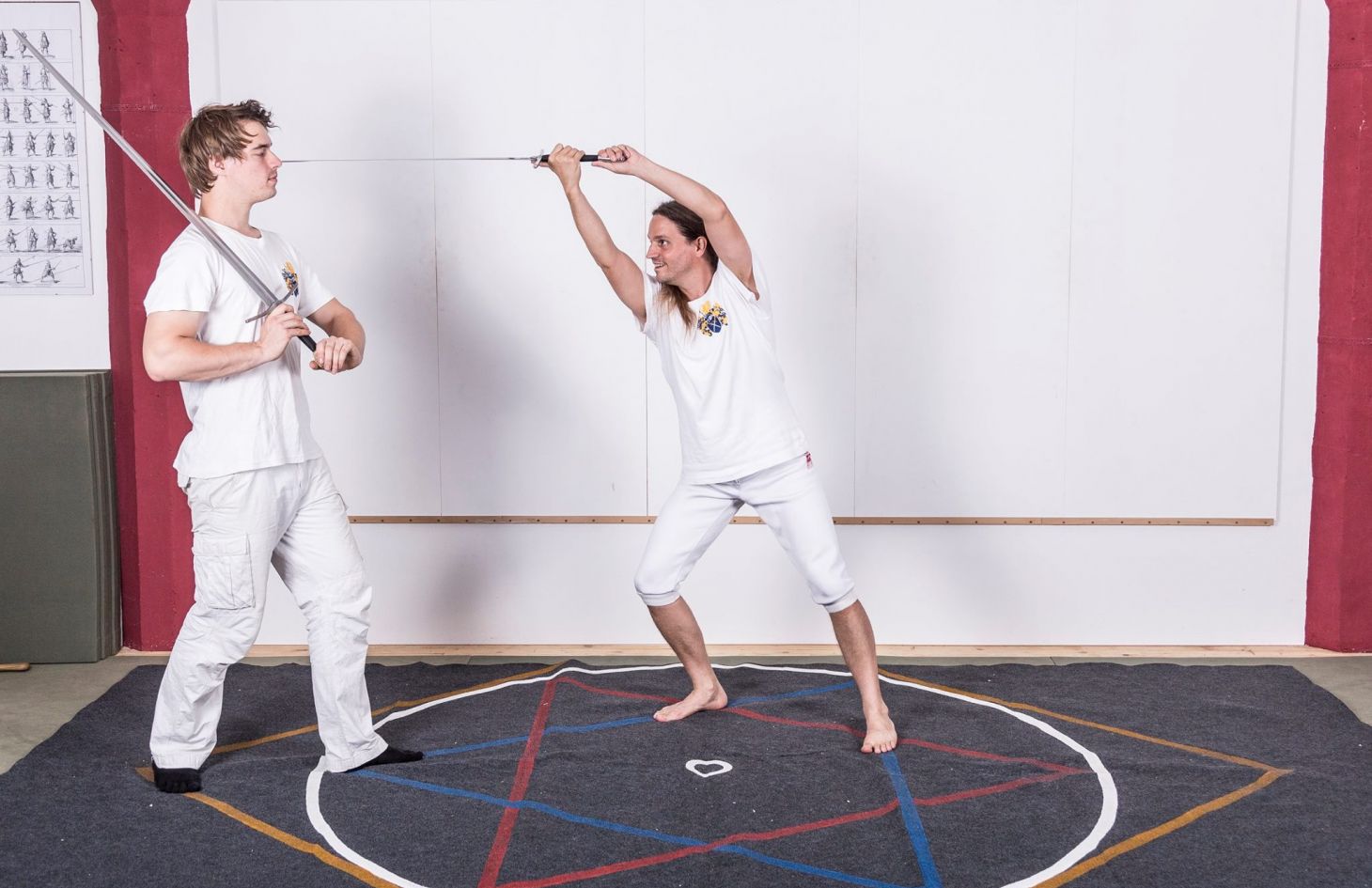 Wir versuchen das alte Wissen um die Kampfkunst hier aus der Region wiederzuerlangen und weiterzugeben. Das Training setzt sich zusammen aus einem Aufwärmtraining, Fallschule, Schwertlauf, Ringen, Schwerttechnik und Freikampf. Gelehrt wird der Umgang mit Langschwert oder dem Anderthalbhänder - und ab und zu auch ein bisschen Einhandschwert, Langes Messer, Dolch und Stangenwaffen.